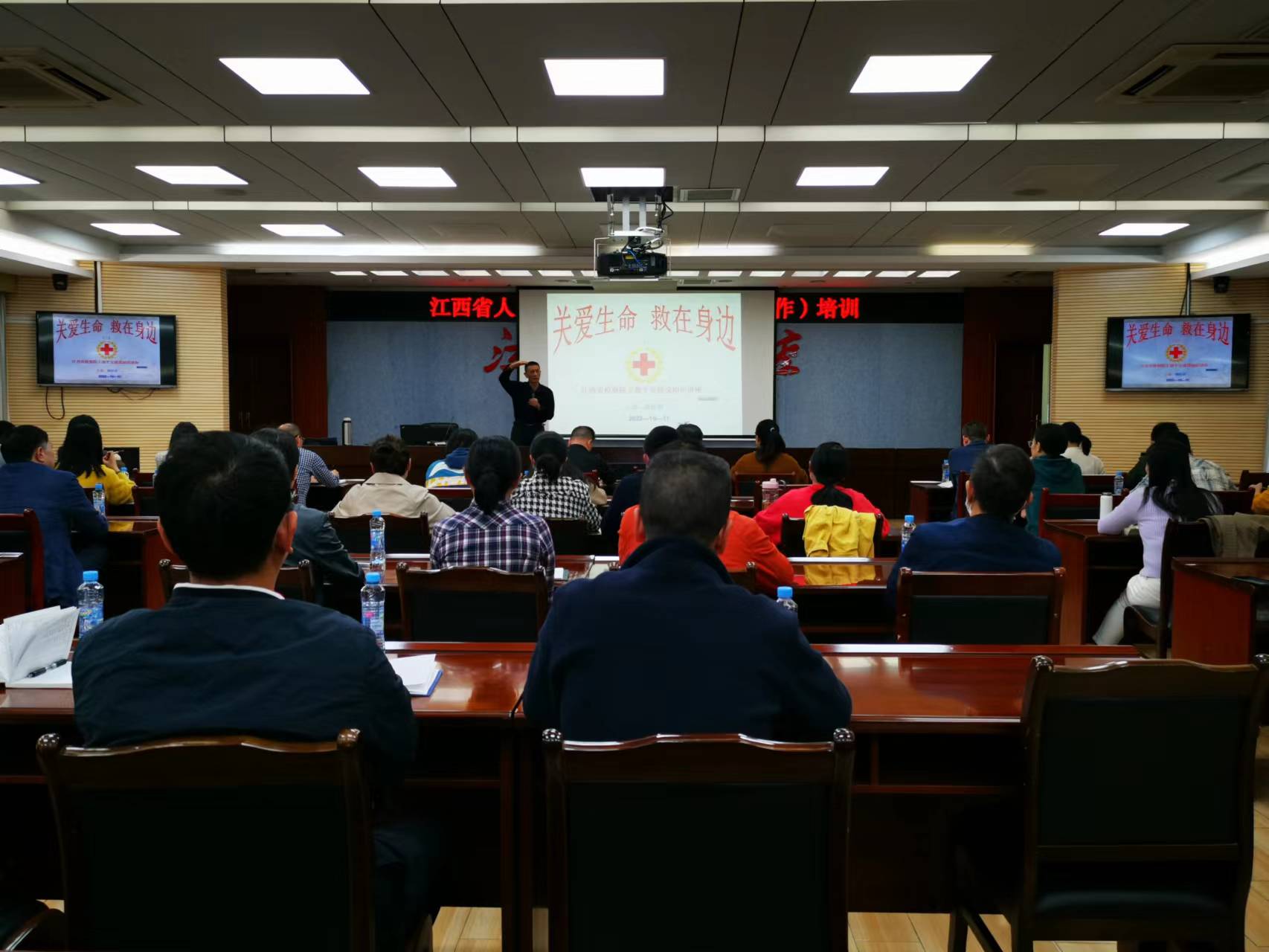 根据省委平安建设(综治工作)工作部署和要求,为进一步强化检察人员的健康意识,提升应急救护能力,10月11日,人人看球 机关组织开展“关爱生命,救在身边”应急救护培训。省院机关和5个派出检察院71名干警参加培训。