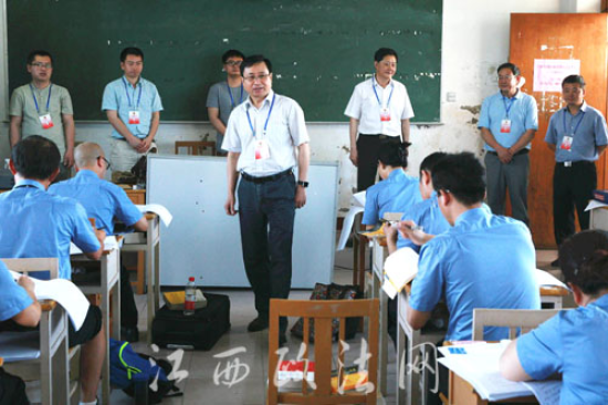 江西人人看球 党组书记、检察长刘铁流在上饶考场巡考。图/姚卫东、张 璐