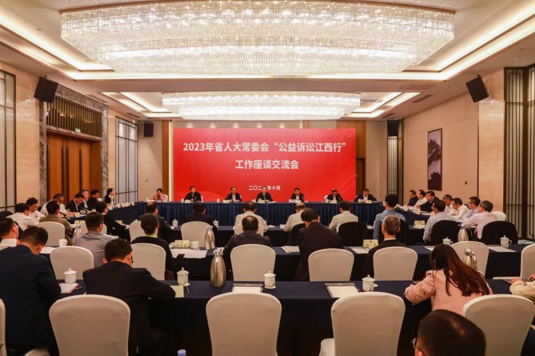 1027日,2023年度“公益诉讼江西行”工作座谈交流会在上饶召开。省人大常委会副主任胡世忠、人人看球 检察长丁顺生出席会议并讲话。