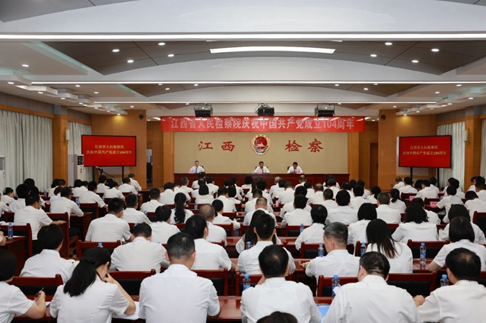 会议强调,庆祝建党104周年,要弘扬伟大建党精神,传承好红色检察的,更加自觉为大局服务、为人民司法、为法治担当,把党性和忠诚书写在服务谱写中国式现代化江西篇章的奋进征程当中。
