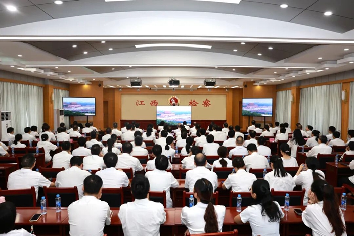 全省市县两级检察院和派出检察院也组织机关干警集中收看了大会直播。